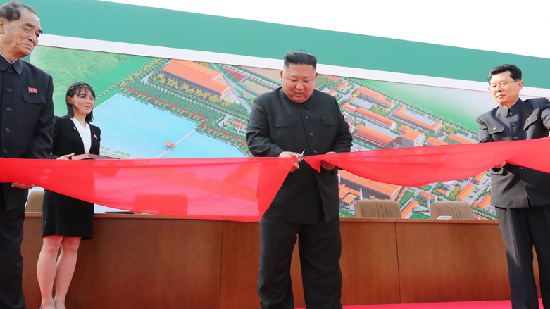 Fabrikasının açılışına katılarak kurdele kestiği görülen Kuzey Kore liderine küçük kız kardeşi Kim Yo-jong ve Kuzey Koreli üst düzey yöneticilerin eşlik ettiği fotoğraflarda yer aldı.