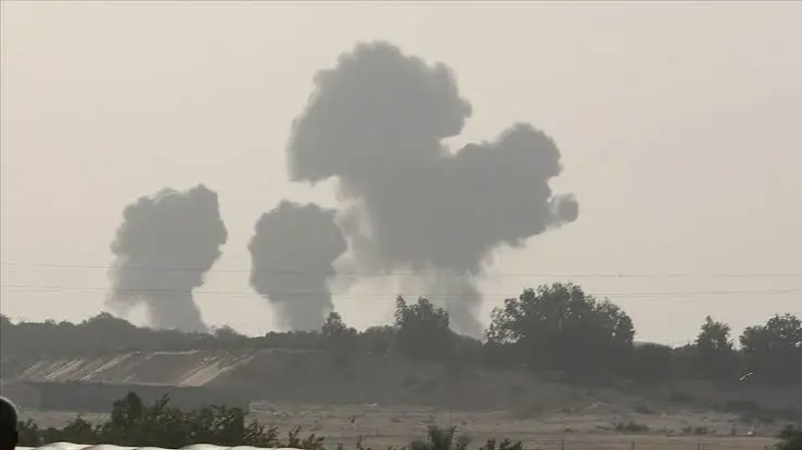 Saldırı kapsamında, iki şiddetli patlama sesi duyulurken, hedef alınan binadan dumanlar yükseldi.