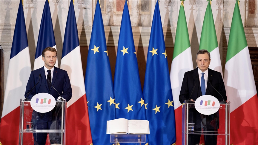 İtalya Cumhurbaşkanı Sergio Mattarella’nın cumhurbaşkanlığı sarayı Quirinale’de ev sahipliği yaptığı törenle, Fransa Cumhurbaşkanı Emmanuel Macron ve İtalya Başbakanı Mario Draghi, iki ülke arasında farklı alanlarda iş birliğini güçlendirmeyi hedefleyen anlaşmayı imzaladı.