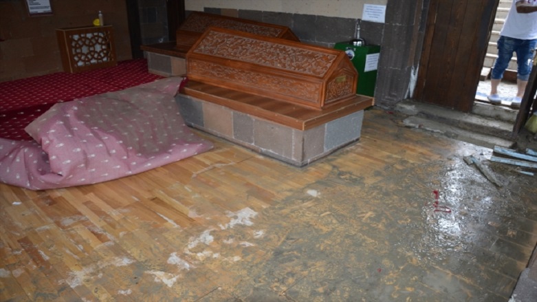 Şiddetli yağışların taşkına neden olduğu Ağrı Doğubayazıt'ta akşam saatlerinde etkili olması nedeniyle bazı dere yatakları taştı. Tarihi Ahmed-i Hani (Ahmedê Xanî) Türbesi'nin çevresinde bulunan yamaçlardan akan sular, toprak kaymalarına neden oldu.