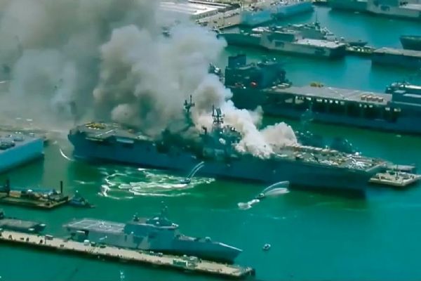 PeyamaKurd - ABD Donanmasına ait San Diego Deniz Üssü'nde bulunan limanda demirli bulunan USS Bonhomme Richard adlı savaş gemisinde yangın çıktı. Olayın görgü tanıkları gemiden patlama sesi duyduklarını iddia edildi.