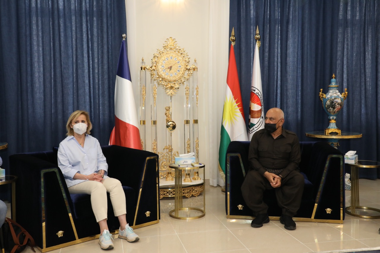 Kürdistan Bölgesi Başkanlık Ofisi’nden yapılan açıklamada, Şeyh Mustafa’nın Erbil’de Fransız Parlamentosu Ulusal ve Askeri Savunma Komitesi Başkanı Françise Dumas, Parlamentonun iki üyesi ve Fransa’nın Irak Büyükelçisi Bruno Huber’ti kabul ettiği belirtildi.