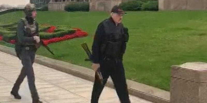 PeyamaKurd - Belarus'ta protestocular başkanlık konutunun çevresinde toplanmaya başlayınca Devlet Başkanı Aleksandr Lukaşenko, helikopterle geldiği başkanlık konutuna elinde silahla indi.