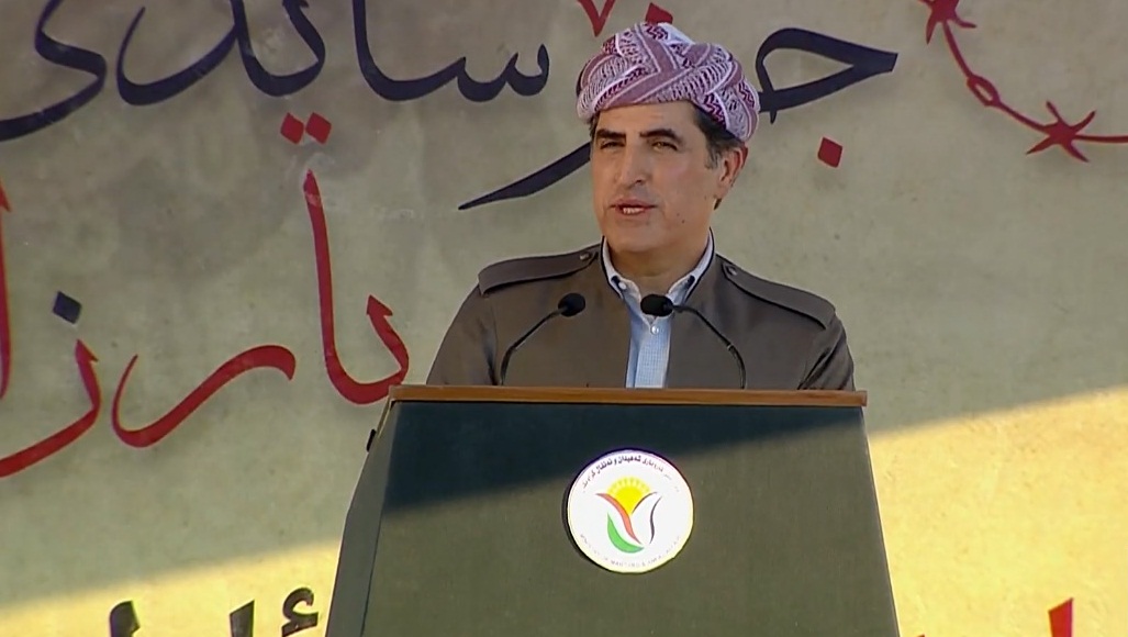 PeyamaKurd - Enfal katliamının başlangıcı olan Barzanilere yönelik jenosidin anma programında konuşan Kürdistan Bölgesi Başkanı Neçirvan Barzani, gözlerinin Enfal kurbanlarının toplu mezarlarının bulunduğu Semave çöllerinde olduğunu ifade etti.
