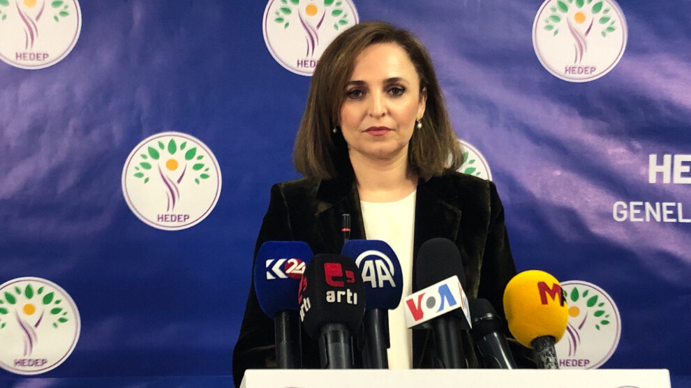 Ayşegül Doğan, partisinin Merkez Yürütüme Kurulu’nun (MYK) yerel seçimlere ilişkin aldığı kararlara ilişkin HEDEP Genel Merkezi’nde basın toplantısı yaptı.