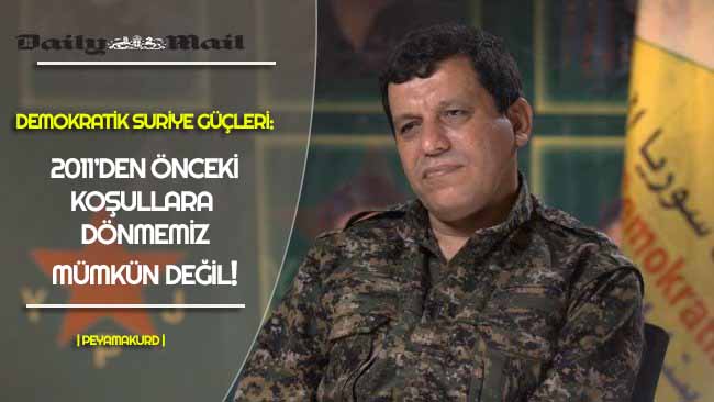 Daily Mail’de yer alan habere göre Mazlum Kobani, "Tüm Suriye için demokratik bir çözüme ulaşmak adına rejim ile diyaloga hazırız. Fakat 2011'den önce var olan koşullara dönmemiz hiçbir şekilde mümkün değil. Eğer Suriye Kürtlerinin hakları tam olarak tanınmaz ise demokratik ve çoğulcu bir Suriye'ye ulaşmakta mümkün değil. Rejim, Kürtlerin kazanımlarını tanımalı” diye kounştu.