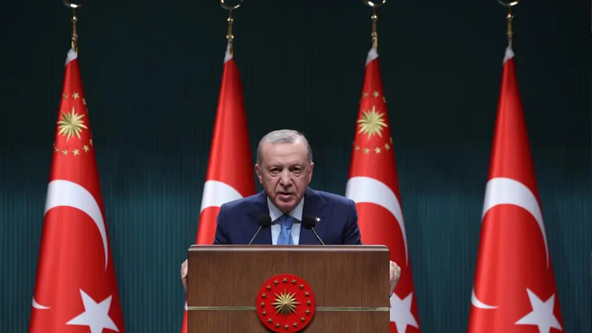 Erdoğan başkanlığında Cumhurbaşkanlığı Külliyesinde saat 15.35'te başlayan Cumhurbaşkanlığı Kabinesi Toplantısı sona erdi. Yaklaşık 3 buçuk saat süren toplantının ardından Erdoğan, basına konuşma yaptı.