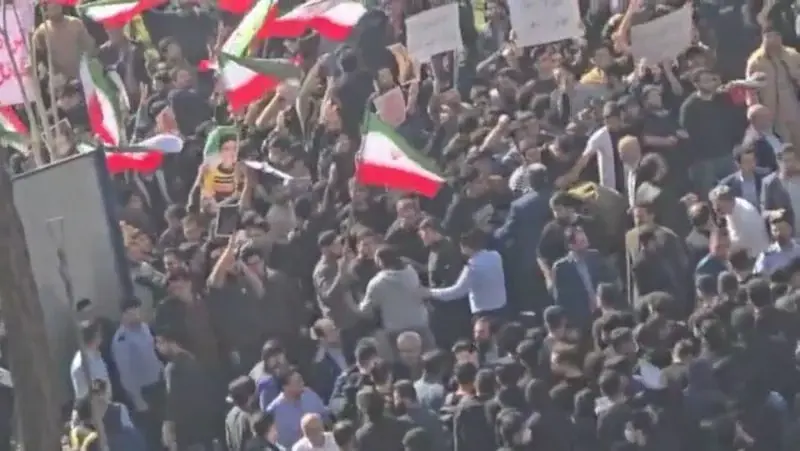 Öte yandan görüntülerde; protestocular ile hükümet destekçileri arasında çatışmaların yaşandığı ve göstericilerin "Molla kefenlenene kadar bu vatan vatan olmayacak" ve "Rejime ölüm" gibi sloganlar attığı da yer aldı.