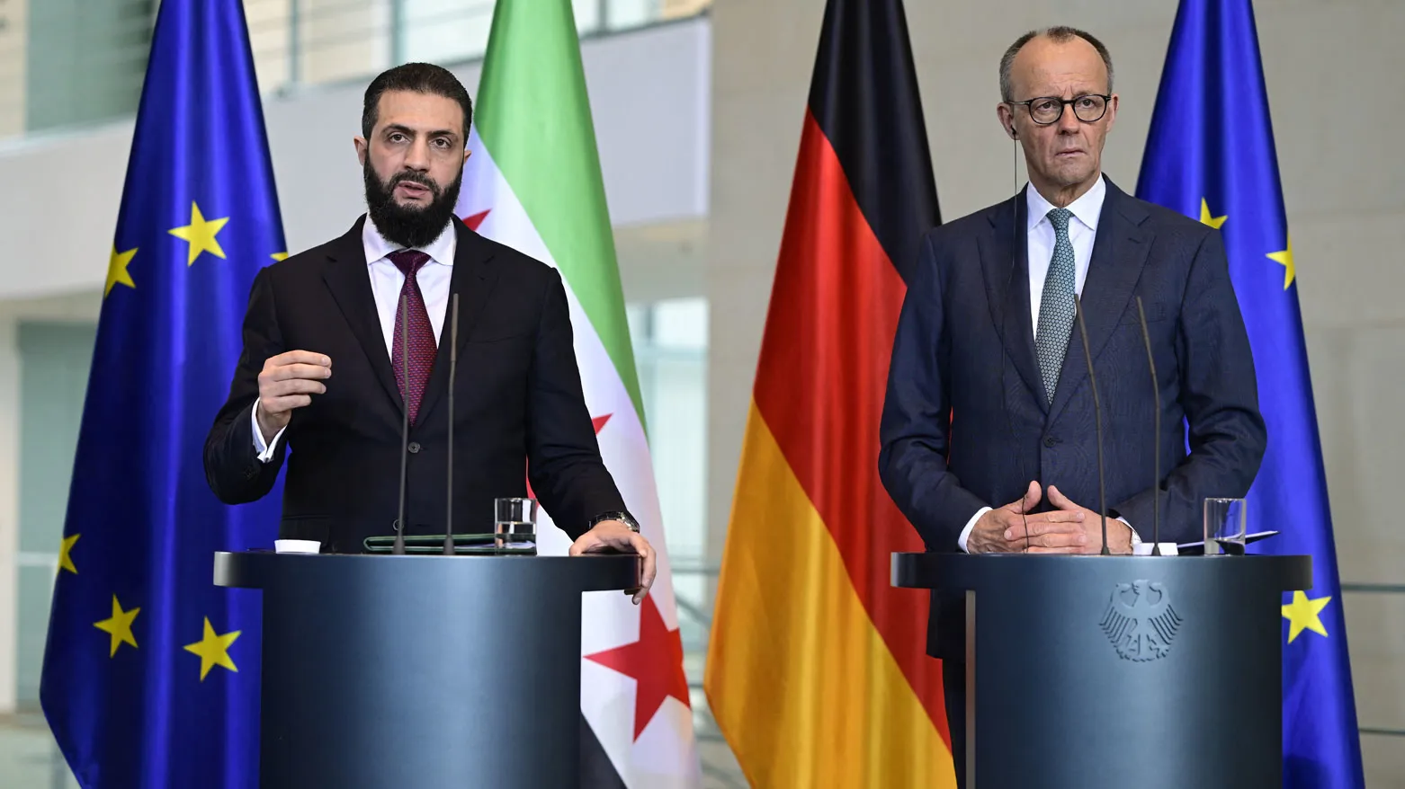 Almanya ziyareti kapsamında basın mensuplarının karşısına geçen Suriye Devlet Başkanı, Orta Doğu'yu saran askeri gerilimlere dikkat çekerek, "Bu tırmanışlar, özellikle savaşın uzaması ve siyasi bir anlaşmaya varılamaması durumunda, küresel piyasalardaki enerji tedarik zinciri ve fiyatlar üzerinde çok büyük riskler oluşturmaktadır." dİye söyledi.