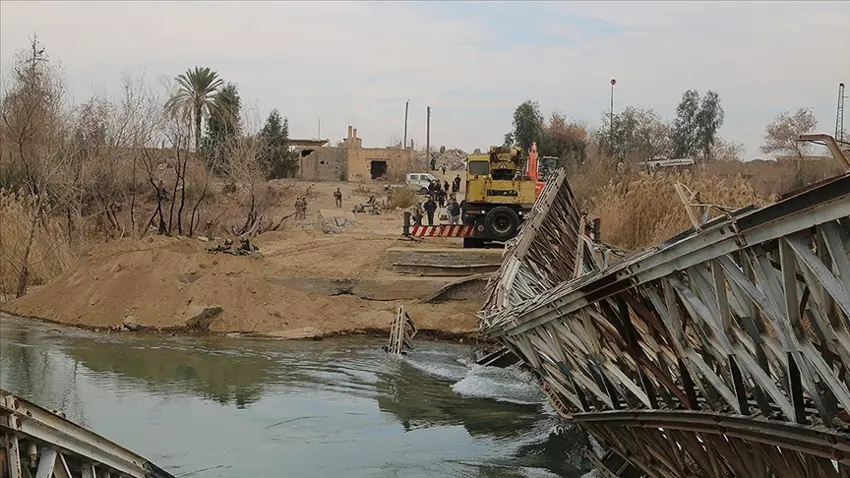 PeyamaKurd - Suriye'de Deyrizor Valiliği, Demokratik Suriye Güçleri’nin Fırat Nehri üzerinde yıkılan Harbi Köprüsü'nü sivillerin geçişi için onarırken, ABD askerleri de köprünün başında mevzilendi.