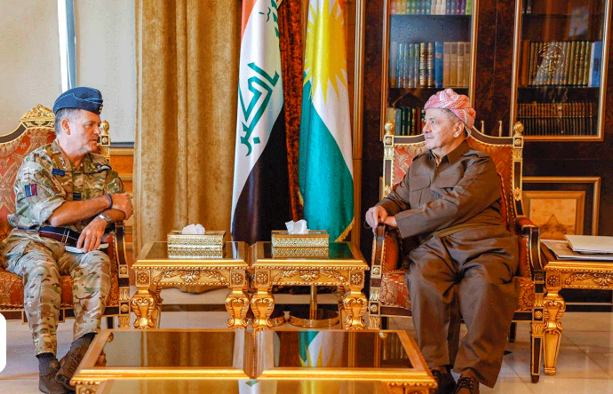 Başkan Barzani, Salahaddin’de İngiltere’nin Kuzey Afrika ve Orta Doğu Kıdemli Askeri Danışman Mareşal Martin Sammy Sampson ve beraberindeki heyeti kabul etti.