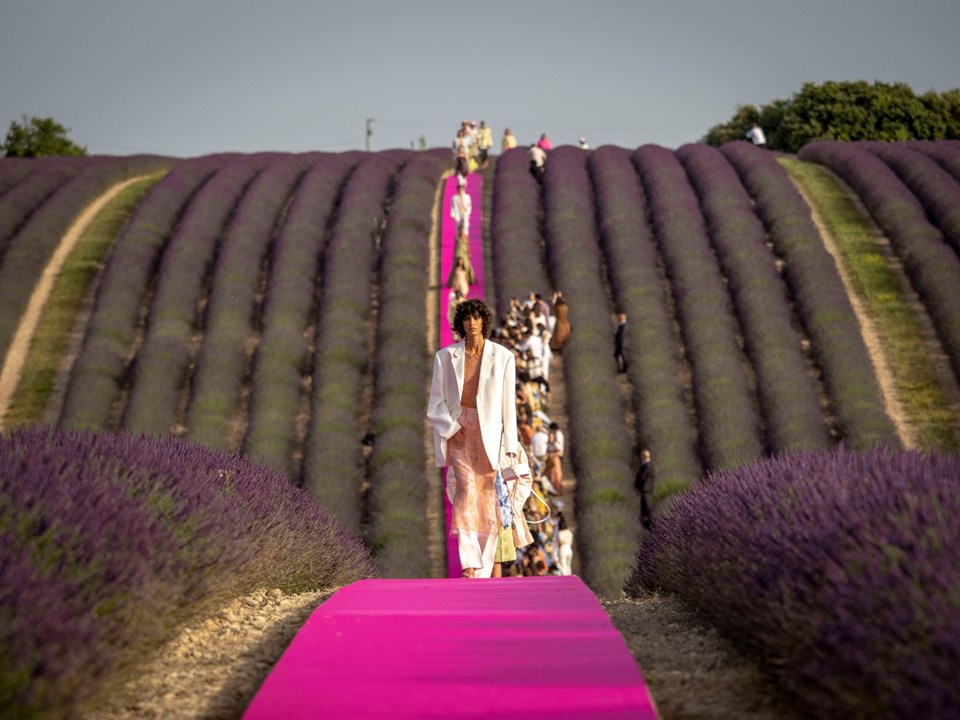 Ancak, koleksiyonda yer alan kıyafetlerden çok defile için seçilen mekân ilgi çekti: Provence bölgesinde bir lavanta tarlası.