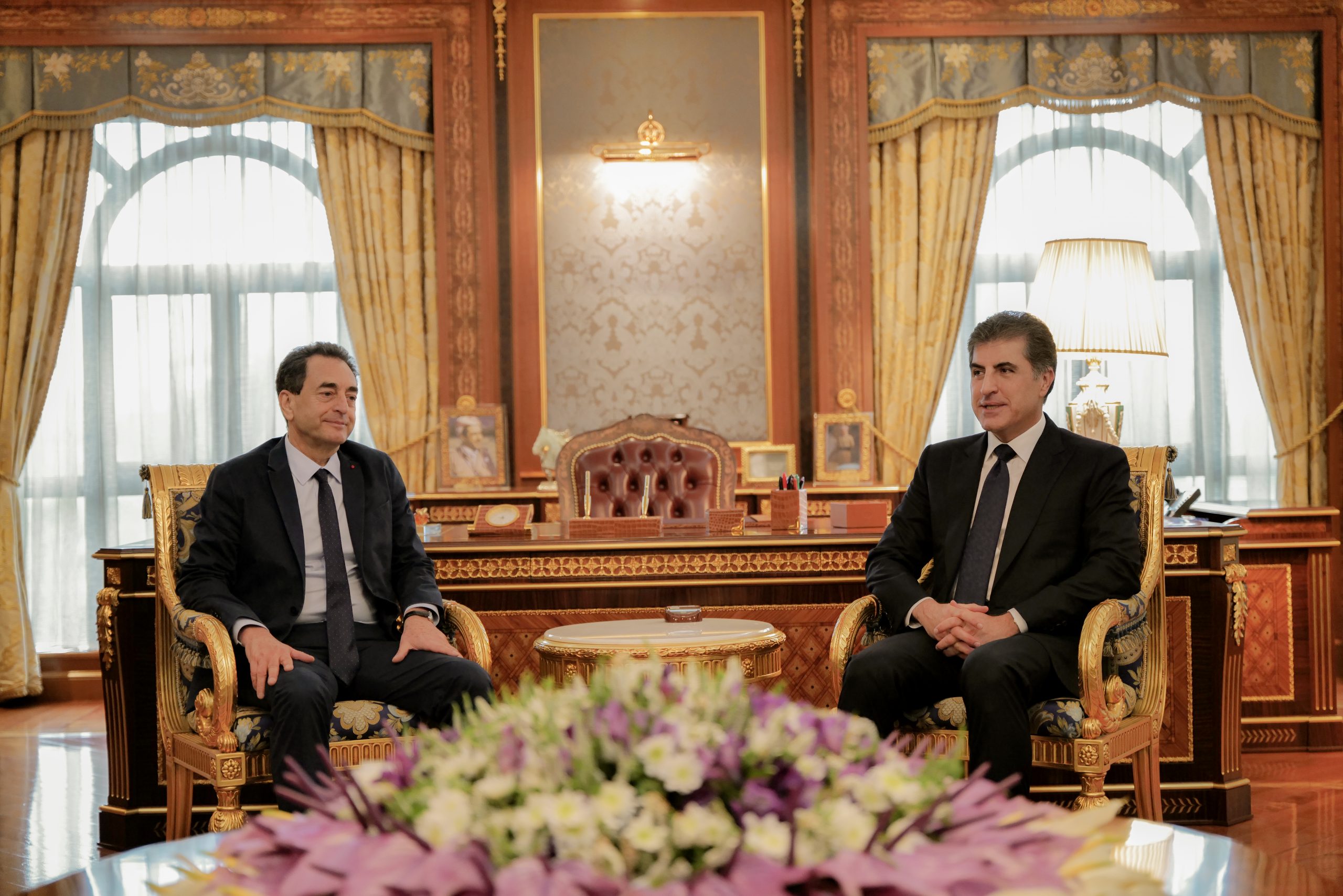 Neçirvan Barzani Erbil'deki konutunda Fransa'nın Bağdat Büyükelçisi Eric Chevalier'i kabul etti.