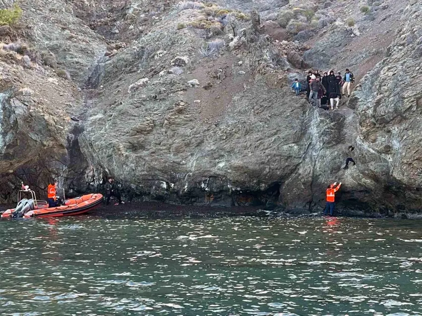 PeyamaKurd - Muğla'nın Datça ilçesine bağlı Aktur Tatil sitesinin karadan ulaşımı olmayan bölgesinde, Sahil Güvenlik Botları tarafından bir grup düzensiz göçmen yakalandı. Yakalanan göçmenler arasında 9 çocuk da bulunuyor.