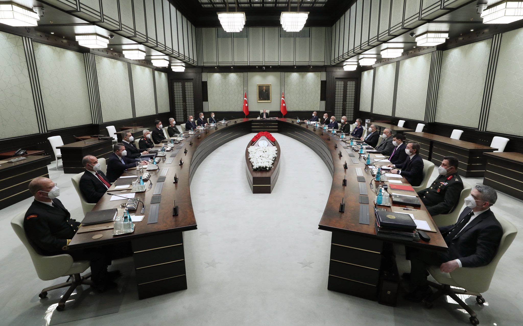 PeyamaKurd - Türkiye Cumhurbaşkanı Recep Tayyip Erdoğan başkanlığında Cumhurbaşkanlığı Külliyesi'nde yapılan Milli Güvenlik Kurulu (MGK) Bildirisi'nde, "diyalog çağrılarına rağmen Türkiye karşıtı politikalarını artırma cihetine giden Yunanistan'ın, uluslararası hukuka riayet etmeye ve iyi komşuluk ilişkilerinin gereğini yerine getirmeye davet edildiği" ifade edildi.