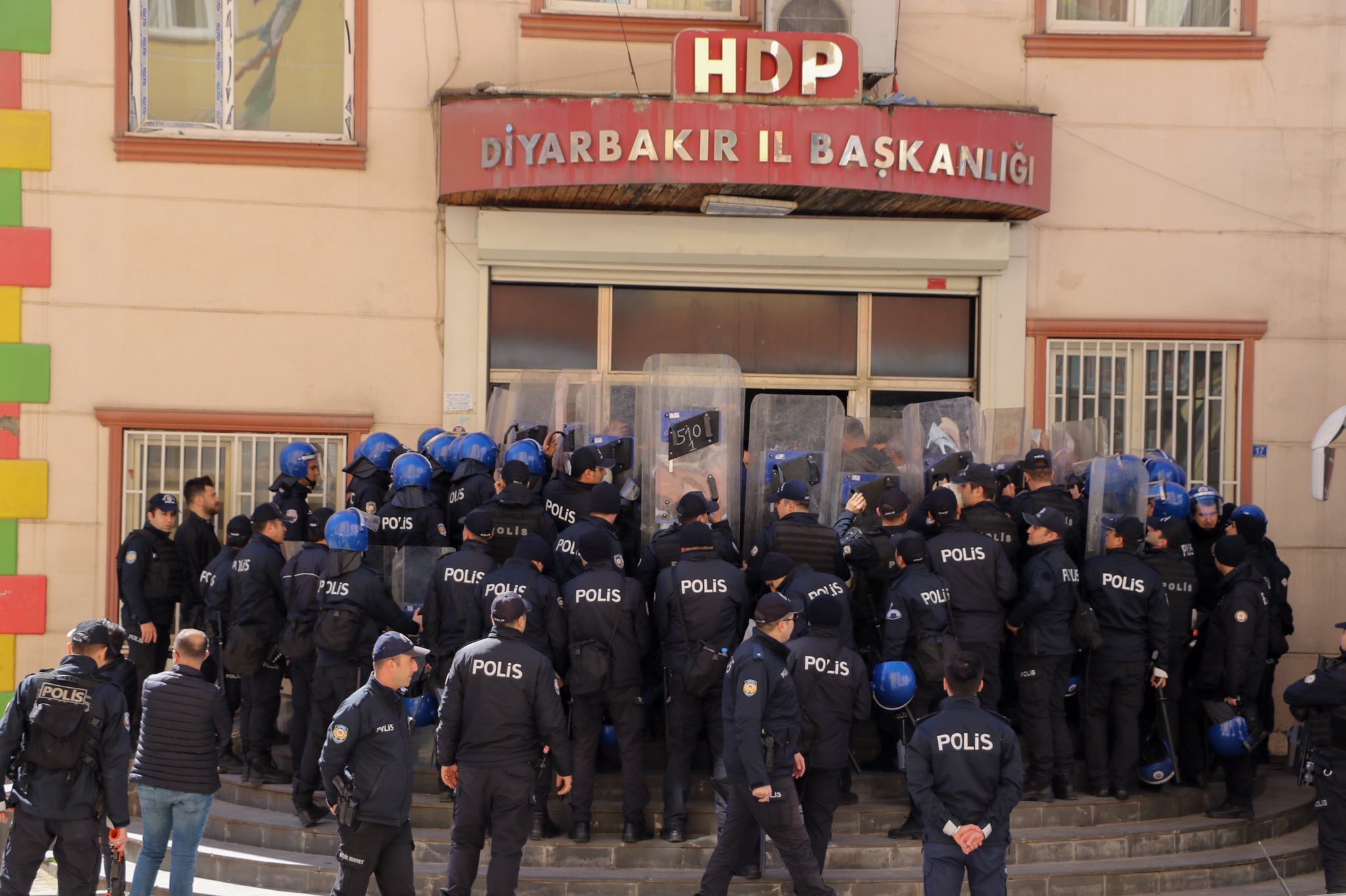 PeyamaKurd- Halkların Demokratik Partisi (HDP) Diyarbakır il binasına baskın gerçekleştiren polis, 3 kişiyi gözaltına aldı.