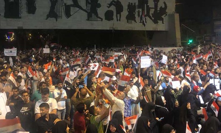 Bağdat'ın Tahrir Meydanında toplanan göstericiler, Irak'ın bölgedeki "İran-ABD çekişmesinden uzak tutulması” talebinde bulundu.