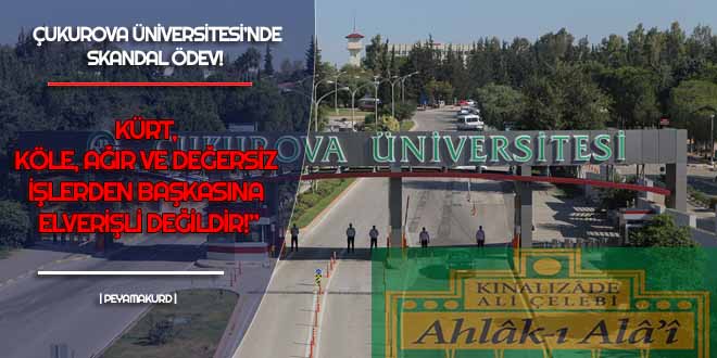Türkiye’nin Adana ilinde bulunan Çukurova Üniversitesi’nde skandal bir olay yaşandı. İddialara göre, İlahiyat Fakültesi son sınıf öğrencilerine verilen ödev kitabı (özellikle Kürt öğrencilerine verilen kitap) Kürt halkına yönelik ağır hakaretler ve aşağılama içeriyor.