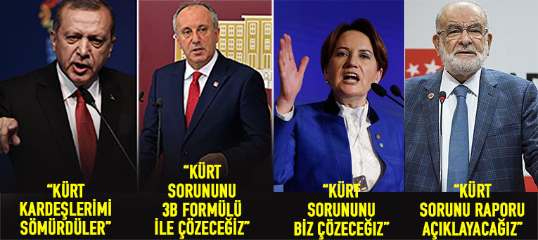 AK Parti Kürt halkının güvenini kaybetmiş durumda. Bu kaybın farkında olan AK Parti, anket çalışmalarının Kürt illerinde düştüğünün bilincinde. Kürt halkına birçok vaat verip ikna ettikten sonra Kürt halkını unutan AKP, Kürtlerin ona karşı yaklaşım değiştirdiğini fark ederek Kürt sorunu üzerinden değil, bu kez “Kürt kardeşlerim ve HDP karşıtlığı” metaforu üzerinden hareket etmekte. CHP’nin Kürt halkına yönelimi ise, Kürt sorunu üzerinden fakat Kürt halkının CHP’ye yönelik tavrı HDP’yi desteklemediğinden dolayı geri planda kalabilir. İkinci turda Akşener’i destekleyeceğini açıklayan Muharrem İnce, Kürtlerin Akşener’den dolayı kendisine yönelik güvenini bir bakıma kırmış durumda. İYİ Parti ise, Kürtlerin algısında MHP ile bağdaşık şekilde kodlanmış durumda. İYİ Partinin “Kürt halkı bize inanıyor” sloganından ziyade Kürtler Akşener ve ekibine yanaşır gibi durmuyor.