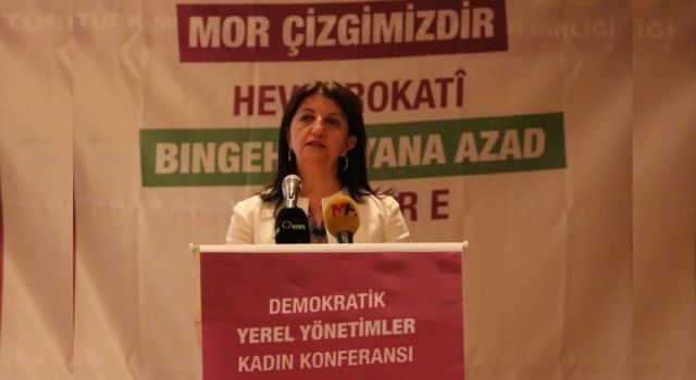 "Bütün bunlara karşın kadınları güçlendirecek her türlü politika ve projenin karşısında durmayı görev bilen tekçi erkek iktidar düzeni demokratik zeminde seçimlerle elde edemediği belediyelerimize kayyım darbesi yaparak mücadelemizi geriletmeye, kazanımlarımızı yok etmeye çalıştı, hala da buna devam ediyor. Kadınları siyasetin, yerel yönetimlerin, ekonominin, kamusal hayatın dışına itmeyi hedefleyen bir zihniyetle karşı karşıyayız.