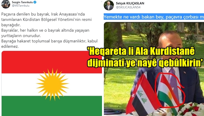 PeyamaKurd – Parlamentarê Kurd ê CHPê yê Stenbolê Sezgîn Tanrikulu, li ser parvekirina Serokê Iyi Partiyê yê bajarê Sakaryayê ku li ser ala Kurdistanê ya ser maseya Serokê Herêma Kurdistanê Nêçîrvan Barzanî û Wezîrê Derve yê Tirk Mevlut Çavuşoglu bersiv bi Ala Kurdistanê da.