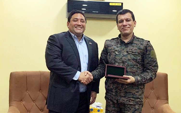PeyamaKurd - Fermandarê Giştî yê Hêzên Sûriya Demorkatîk (HSD) Mezlûm Ebdî, pêşwazî li Cîgirê Nûnerê Amerîkayê yê nû bo karûbarên Sûriyê David Braunstein kir.