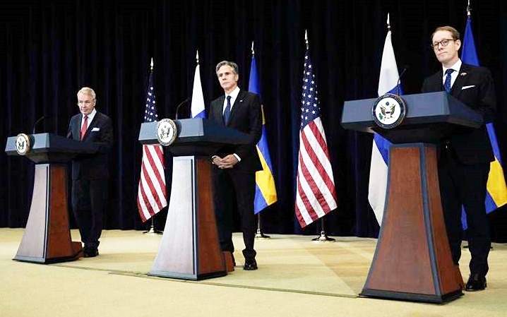 Blinken piştî hevdîtina bi Wezîrê Derve yê Fînlandê Pekka Havisto û Wezîrê Derve yê Swêdê Tobias Billstrom re diyar kir ku Fînland û Swêd amade ne bibin hevpeymanên NATOyê ku leşkerên herdu welatan li Kosova, Afganistan, Iraq û Lîbyayê bi hêzên Amerîka û NATOyê re xizmetê dikin.