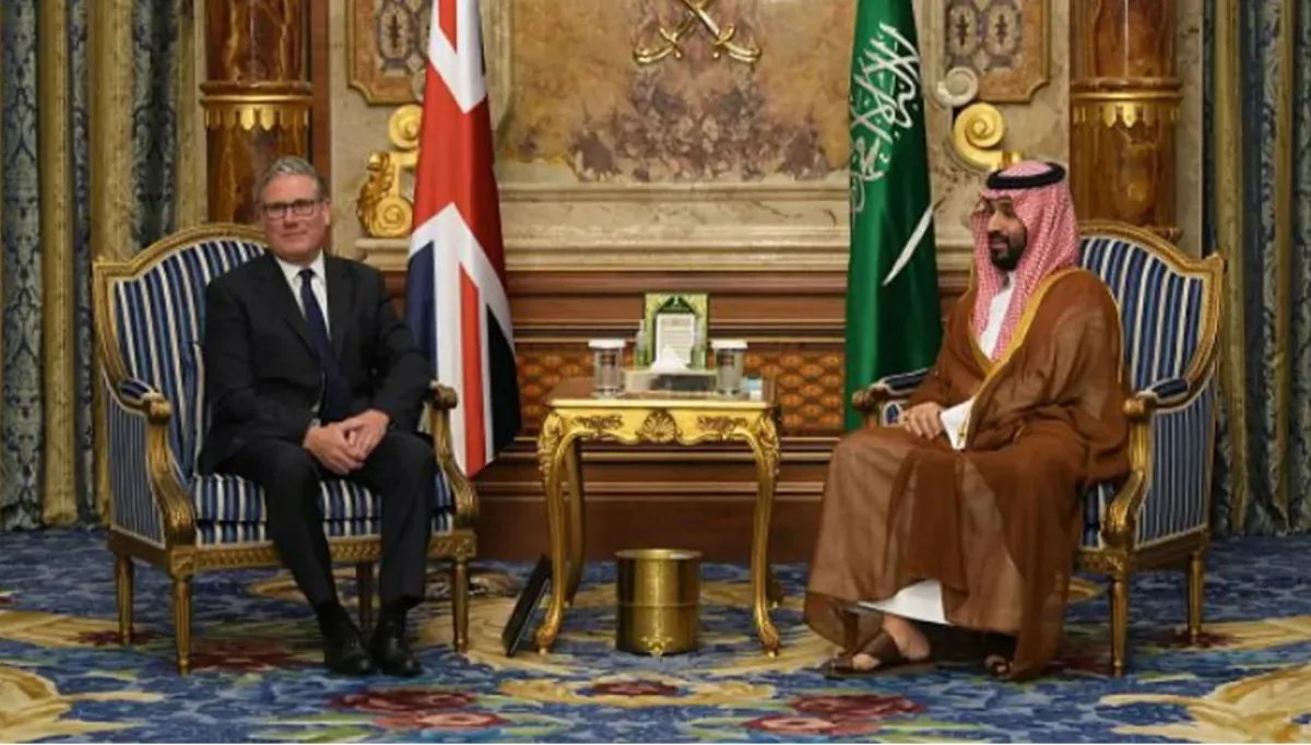 Di heman demê de bi hatina Serokwezîr Starmer re, Wezareta Parastinê ya Erebistana Siûdî ragihand ku pergalên wê yên parastinê neh dronên bombebarkirî li qada hewayî ya welêt hilweşandine. Erebistana Siûdî agahî li ser cih an hedefa droneyan neda; lêbelê, ev êrîş du roj piştî ku DYA û Îranê li ser agirbesteke du hefteyan li hev kirin, pêk hatin.