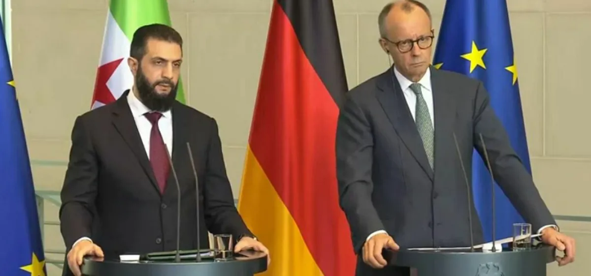 PeyamaKurd - Serokwezîrê Almanyayê Friedrich Merz, piştî hevdîtinên li Qesra Bellevue bi Serokê Sûriyeyê Ehmed El-Şera re civînek çapemeniyê ya hevbeş li dar xist.