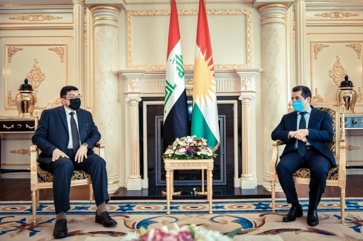 PeyamaKurd - Serokwezîr Mesrûr Barzanî li paytexta Herêma Kurdistanê Hewlêrê, pêşwazî li Wezîrê Çavkaniyên Avê yên Iraqê Mehdî Reşîd Hemedanî kir.