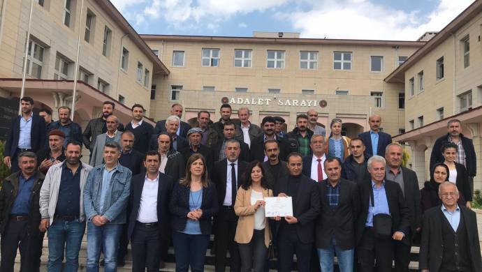 Dema wergirtina mazbeteya şaredariyê parlamentarên HDPê Meral Daniş Beştaş, Siddik Taş û çend rêveberên din ên HDPê amade bûn.