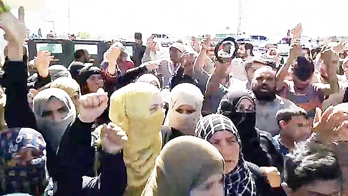 Li gorî jêderên herêmê, piştî ku koma çekdar a bi navê Cebha El-Şamiya ya girêdayî artêşa Tirkiyê, jin jî di nav de hejmarek şêniyên taxa Eyn El-Erûs a Girê Spî bi tohmeta têkiliyên wan bi HSDê re hene revandin, li ber baregeha çekdaran xwepêşandan li dar xistin.