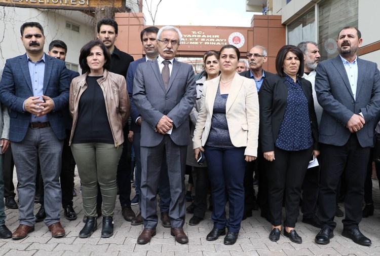 Hevşaredarên HDPê yên Amedê îro 9ê Nîsanê li ber avahiya Lijneya Hilbijartinê ya Kayapinarê daxuyaniyeke çapameniyê dan.