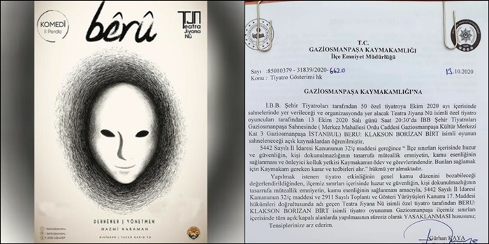 PeyamaKurd – Lîstika şanoya Kurdî ya bi navê ‘Berû’ li sehneya navçeya Gazîosmanpaşa ya girêdayî Şaredariya Bajarê Mezin ê Stenbolê wê bihata pêşandan, beriya lîstikî bi demekê hat qedexekirin.