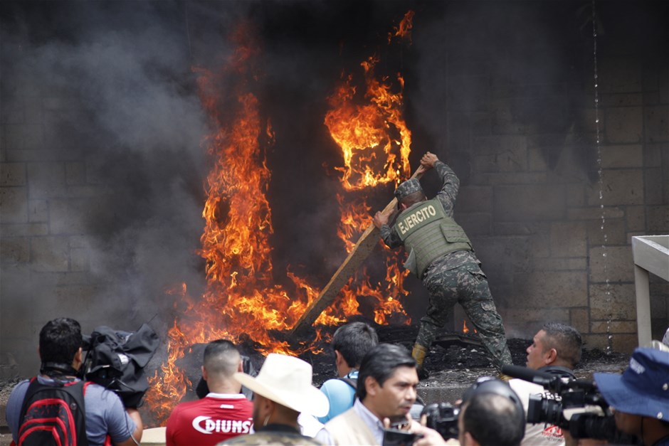Li Hondurasê li ber balyozxana Amerîkayê lastîkan sewitandin