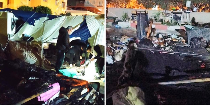 PeyamaKurd – Li bajarê Hatay navçeya Îskenderûnê derengiya şevê agir bi konê mexdûrên erdhejê ket û 2 jê bi giranî 3 kes birîndar bûn.