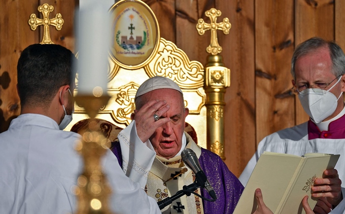Papa Francis di merasîma nimeja qedasiyê ya li Yarîgeha Franso Herîrî ya Hewlêrê de ku bi qasî deh hezar kesan beşdarî kir de, çend ayetên Încîla pîroz şîrove kirin.