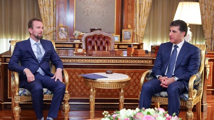 PeyamaKurd - Serokê Herêma Kurdistanê Nêçîrvan Barzanî, îro 7ê Îlonê roja Çarşemê pêşwazî li Balyozê Yekîtiya Ewropa (YE) yê li Iraqê Ville Varjola û şanda pê re kir.