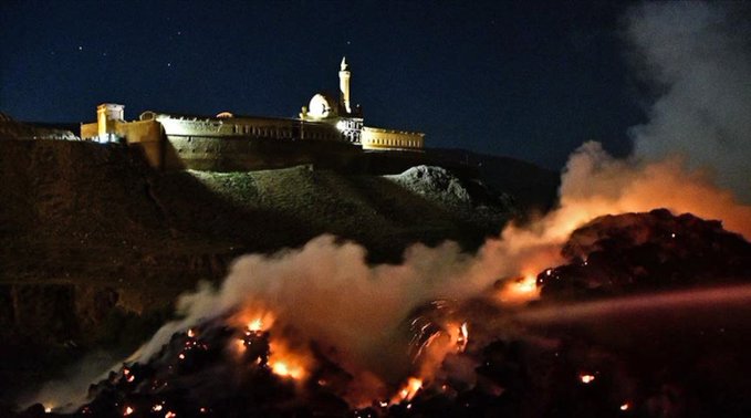 Balon ji ber bayê zêde, li ber maleke nêzîkî Qesra Îshaq Paşa ketiye û şewatê dest pê kiriye.