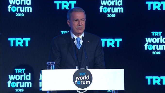 Hulusî Akar li Stenbolê di TRT World Forumê de axivî û parastina êrîşên ser Sûriye û Rojavayê Kurdistanê kir.
