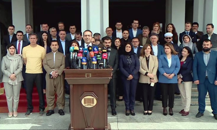 PeyamaKurd - Fraksiyona Partiya Demokrat a Kurdistanê (PDK) ya Parlamentoya Kurdistanê di civîneke rojnamevanî de ragihand, eger Seroka Parlamentoyê ji nû ve dest bi rûniştinên parlamentoyê neke û her partiyeke bixwaze parlamento têk bide, ew ê jî piraniya xwe li parlamentoyê bi kar bînin.
