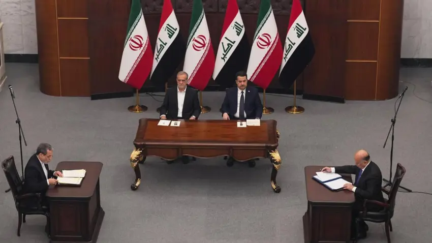 Serokwezîrê Iraqê Mihemed Şiya Sûdanî û Serokomarê Îranê Mesûd Pizîşkiyan bi amadebûna şandeyên bilind yên herdu welatan li Bexdayê civiyan û piştî wê civînê 14 belgeyên hevtêgihîştinê îmze kirin.
