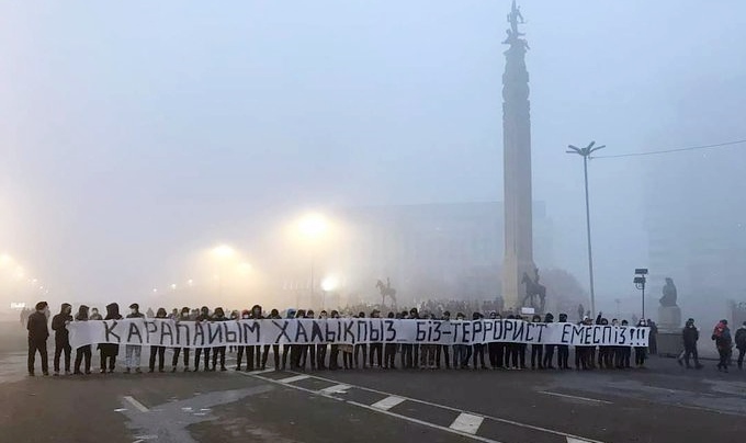 Serokomarê Kazaxistanê Qasim Comerd Tokayev got ku li piraniya welat pergala destûrî hatiye dabînkirin û xwepêşander 'terorîst' jî bi kuştinê tehdît kirin. Li ser daxuyaniyên gefxwarinê yên Tokayev xwepêşanderên Kazaxistanê jî bi nivîsên, 'Em xelkê ji rêzê ne, ne terorîst in' bersiv dan.