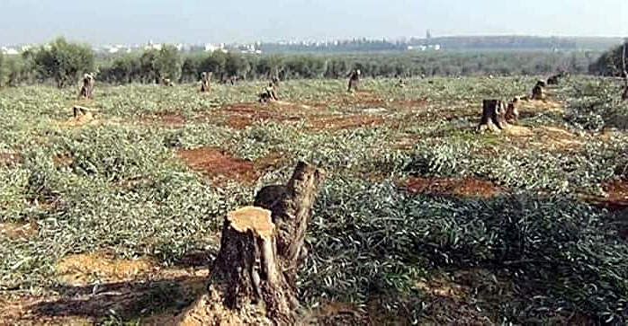 PeyamaKurd – Li bajarê Efrînê yê Rojavayê Kurdistanê ku ji aliyê komên çekdar û artêşa Tirkiyê ve hatiye dagirkirin, çekdaran 90 darên zeytûnan û 50 darên hinaran birîn.