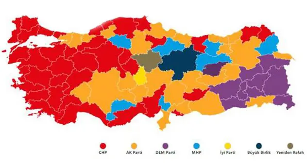 PeyamaKurd – Di hilbijartinên herêmî yên Tirkiye û bakurê Kurdistanê de, li gor encamên heta niha CHP bi rêjeya ji sedî 39 dibe partiya yekem.