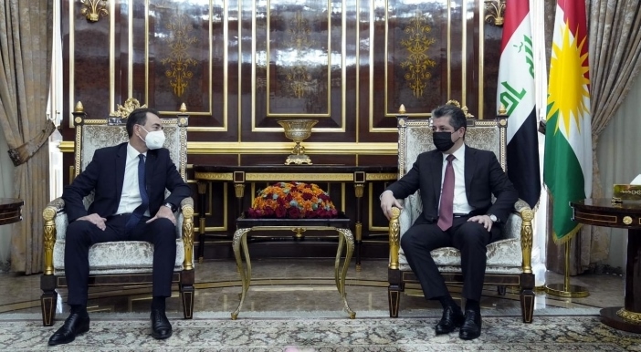 PeyamaKurd - Serokwezîrê Herêma Kurdistanê Mesrûr Barzanî îro Yekşemê pêşwazî li balyozê nû yê Fransa li Iraqê Eric Chevallier kir.