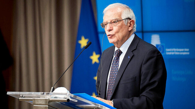 Josep Borrell, li Brükselê beriya civîna bi Wezîrên Derve yê Yekîtiya Ewrûpayê re, li ber deriyê ciyê civînê daxuayniyekî belav kir.