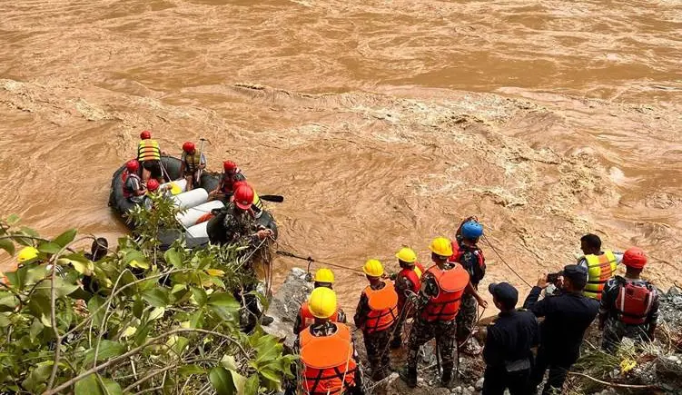 Yadav ragihand ku otobasa ku ji paytex Katmanduyê diçû bajarê Gaurê û 41 kes tê de bûne ji ber hezîna axê ketiye çem.