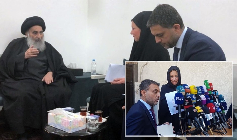 Nûnera NY ya Iraqê Jeanine Hennis-Plasschaert li Necefê Elî Sîstanî re li ser rewşa Iraq û daxwazên xwepêşandêran civiya.