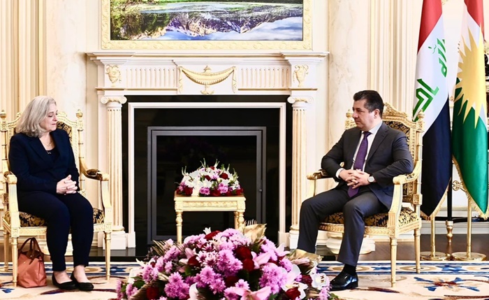 PeyamaKurd - Serokwezîrê Herêma Kurdistanê Mesrûr Barzanî, îro duşemê 11ê Îlonêli paytext Hewlêrê pêşwazî li Balyoza Amerîka ya Iraqê Alina Romanowski û şanda pê re kir.